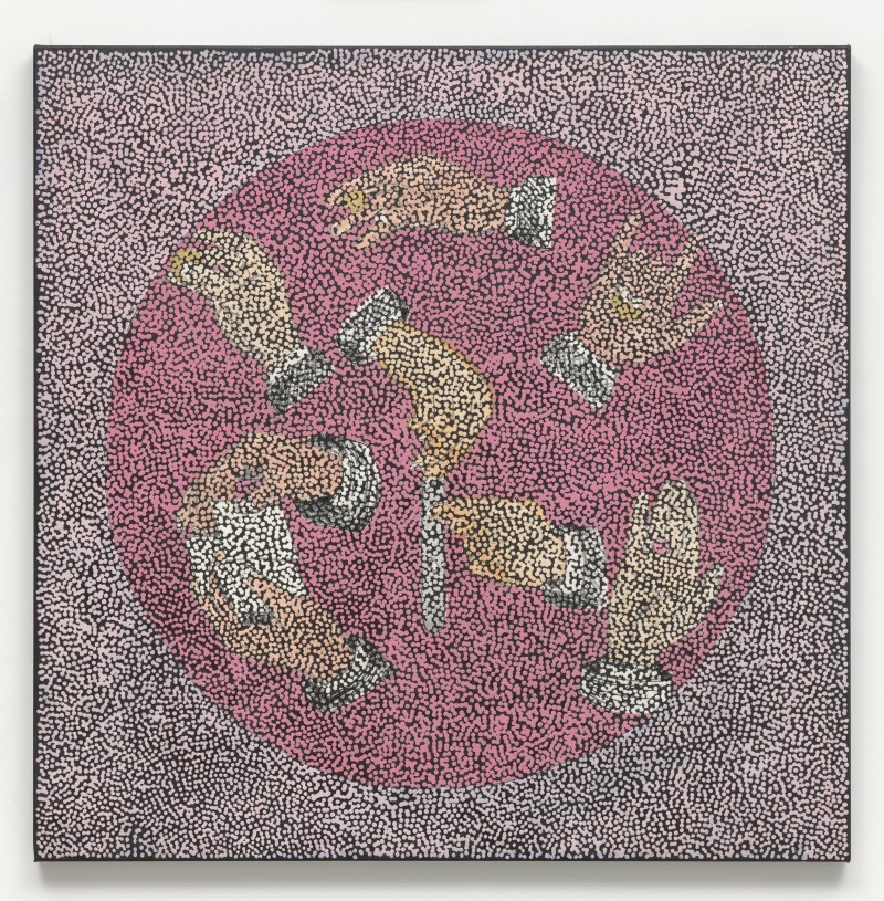 Daniel Boyd (b.1982, Australian) engages with his Aboriginal heritage by consistently reinterpreting established perspectives of Australian colonial history. Boyd’s paintings are covered with clear white dots of glue, which are superimposed onto images of icons that played significant roles in the formation of the nation’s history. Each dot acts as a “lens” through which the artist views the world. Using a technique that borrows from Australian Aboriginal dot painting, these numerous lenses facilitate the artist to read the world as multiple histories instead of a singular narrative. Amalgamating the dualities between black and white, darkness and light, the viewer takes on an active role in connecting the domains between the positive and the negative, and realigning the viewpoints between the past and present. Hence, the artist offers the viewers an opportunity to fill and enlighten the dark void of the unknown with individual knowledge and different backgrounds, completing the picture as one enters and exits through disparate vantage points. In 2023, Boyd presented his first international solo exhibition at Gropius Bau, followed by a second iteration of the retrospective at the Institute of Modern Art, Brisbane.